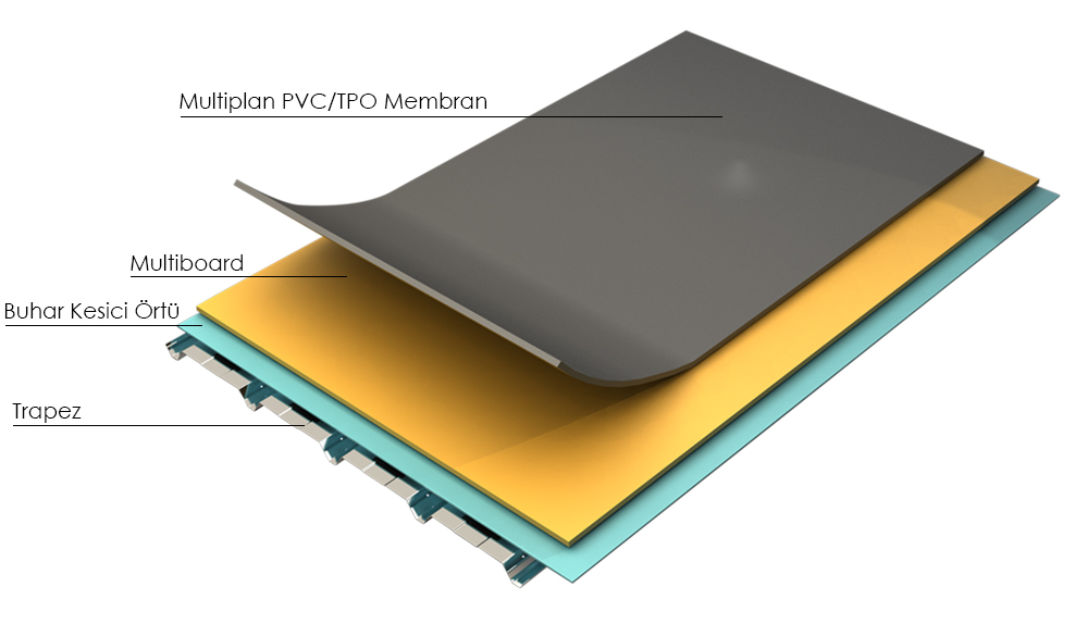 MULTIBOARD; PIR iki ana bileşenin reaksiyonu sonucu ve yardımcı malzemelerin katkısıyla üretilen termal iletkenliği oldulça yüksek olan bir yapı malzemesidir. Bileşenlerin reaksiyonu sonucu açığa çıkan ısı ile buharlaşmak isteyen gazlar oluşan hücreler içinde hapsolarak termal iletkenlik özelliğini mükemmel hale getirmiştir. MULTIBOARD izolasyon elemanları; sürekli proses yöntemi ile PIR malzemenin iki levha arasına kombine edilmesi yöntemiyle üretilmektedir.